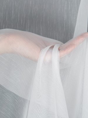 Tkanina firanowa gładka, mleczny woal o lejącej strukturze zakończona szwem obciążającym