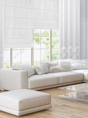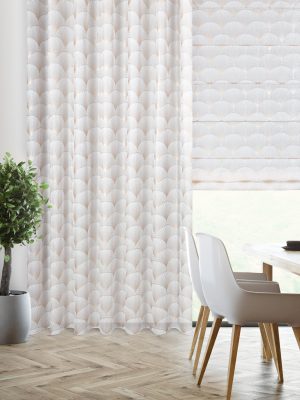 Firana z tkaniny typu batyst z delikatnie połyskującym, geometrycznym nadrukiem na dole tkaniny