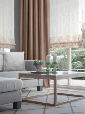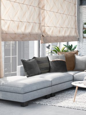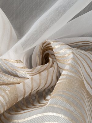 Tkanina RABI batyst z delikatnie połyskującym, geometrycznym nadrukiem na dole tkaniny
