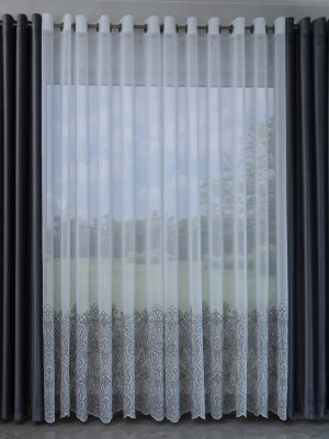 Tkanina firanowa ROKSI z dolnym ornamentowym haftem