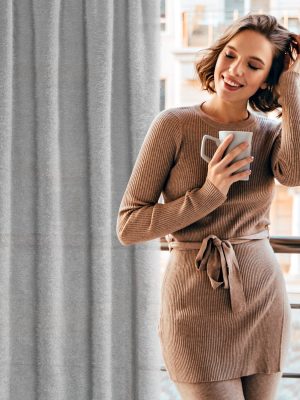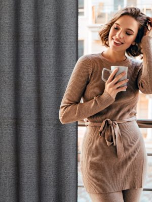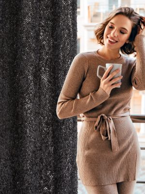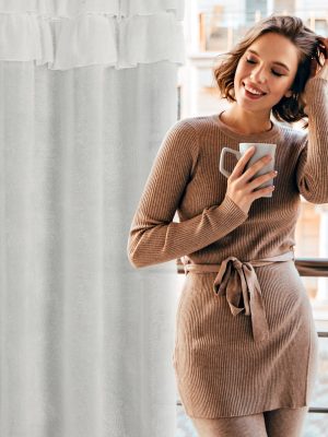 Zasłona AGIS z tkaniny moherowej zdobiona subtelnymi falbanami