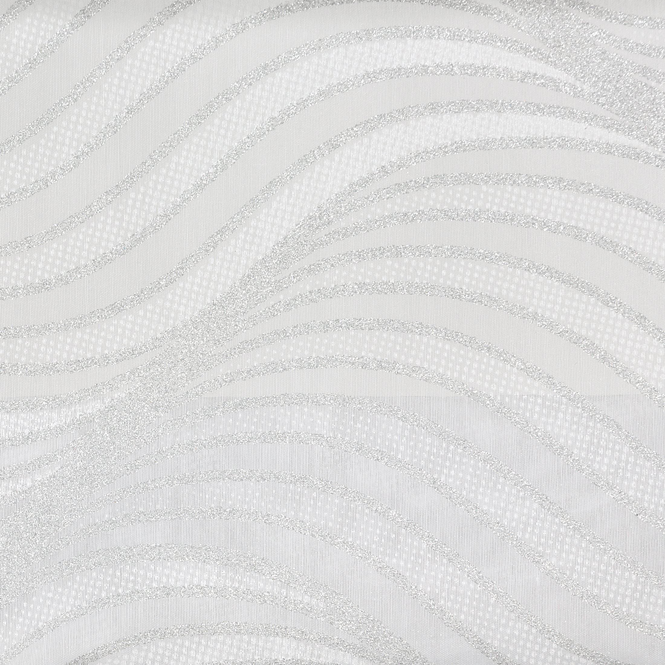 - Wykonany z najwyższej jakości transparentnego białego batystu ze srebrnym drukowanym wzorem w kształcie opływowej fali.