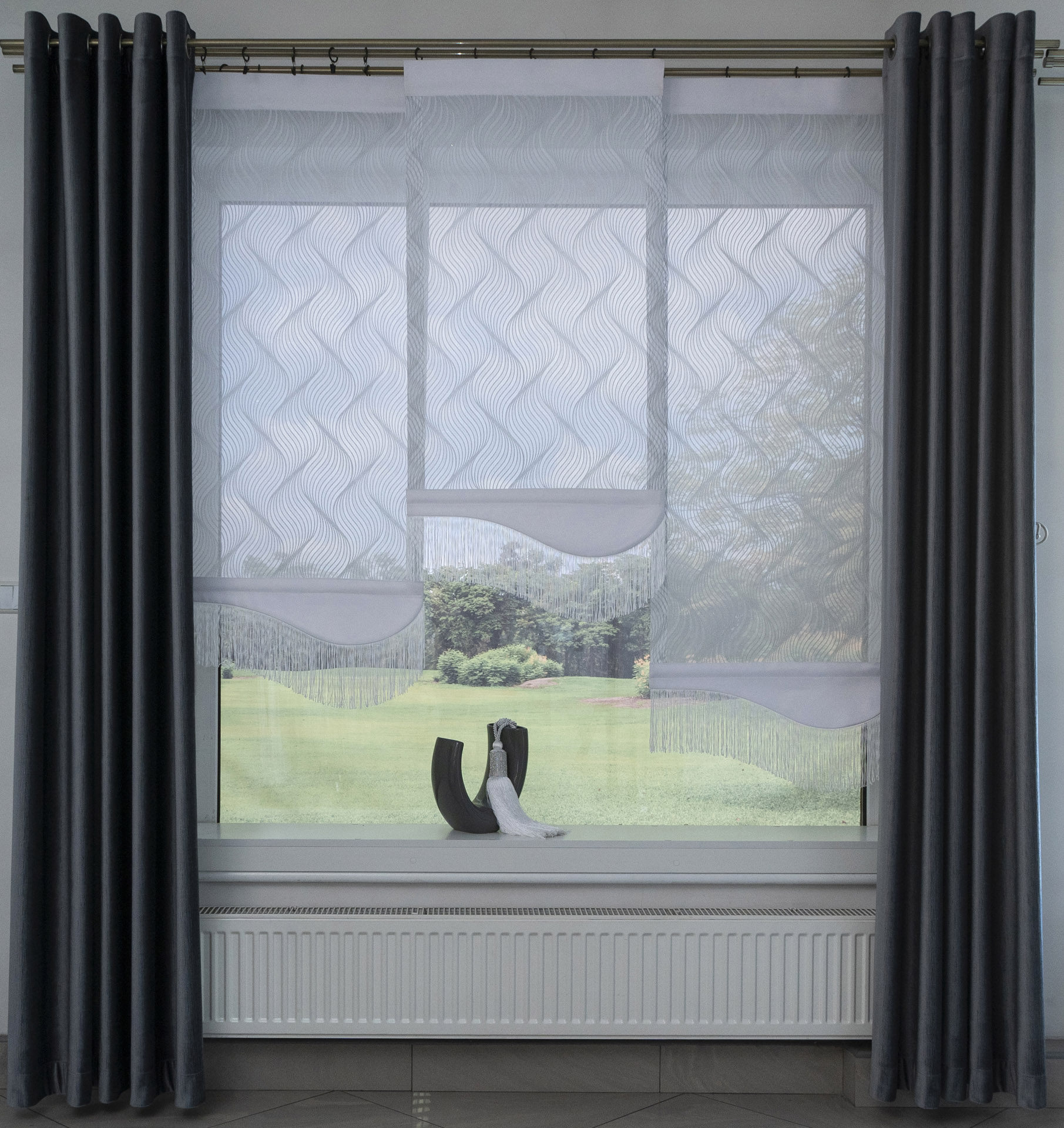 - Ekran FALA wzór frędzle na przemian z Ekranem FALA gładka kod:669/4342 w jednym oknie.