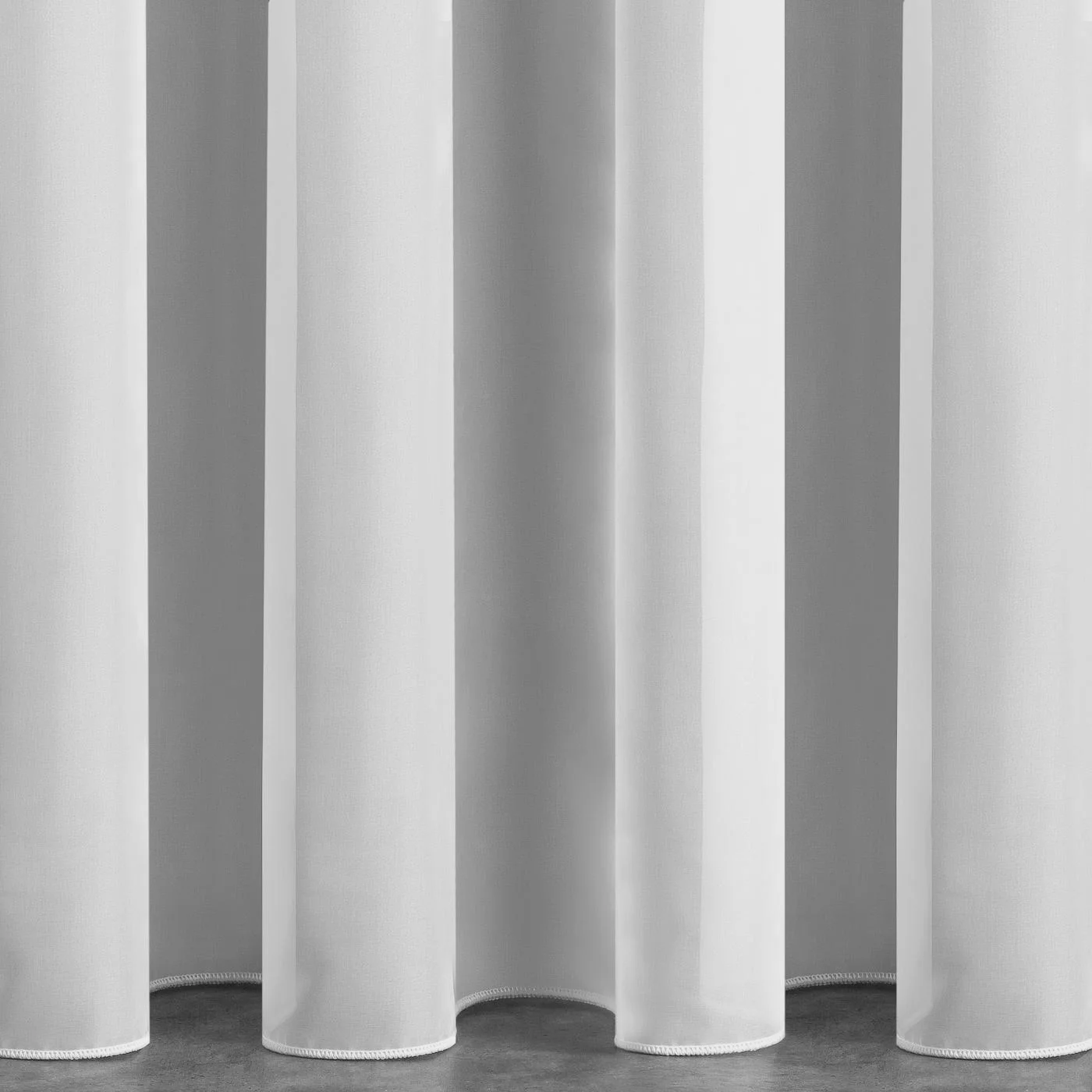 Tkanina firanowa gładka, mleczny woal o lejącej strukturze zakończona szwem obciążającym